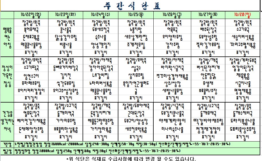 | 2018.,10.22.~10.28. 식단표 관리자2018-10-20조회수 3767 |