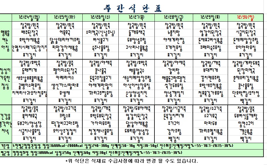| 2018.12.24.~12.30. 식단표 관리자2018-12-21조회수 3458 |