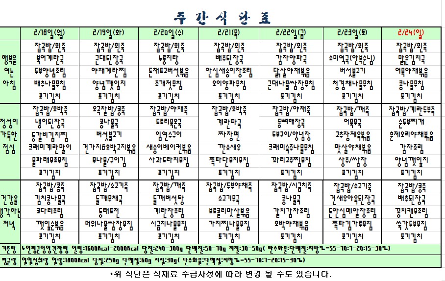 2019.02.18.~02.24식단표 |