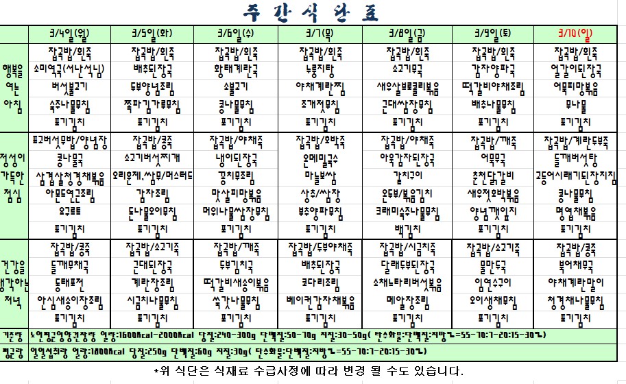 2019.03.04~03.10 식단표 |