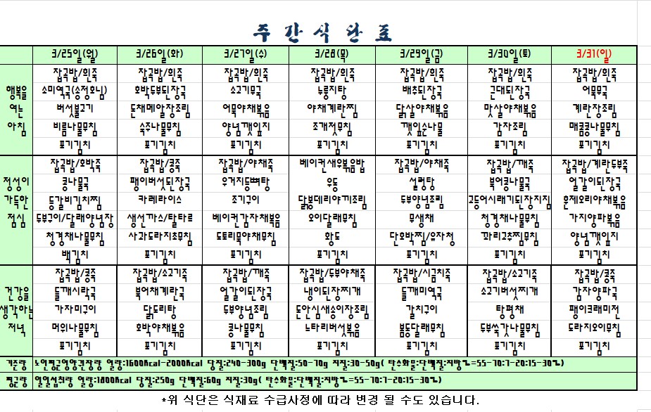 | 2019.03.25~03.31. 식단표 관리자2019-03-22조회수 3674 |