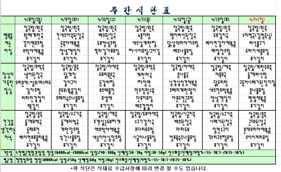 첨부파일 첨부 19.4.8~4.14 주간식단표.jpg [File Size:228.1 KB/Download:12]