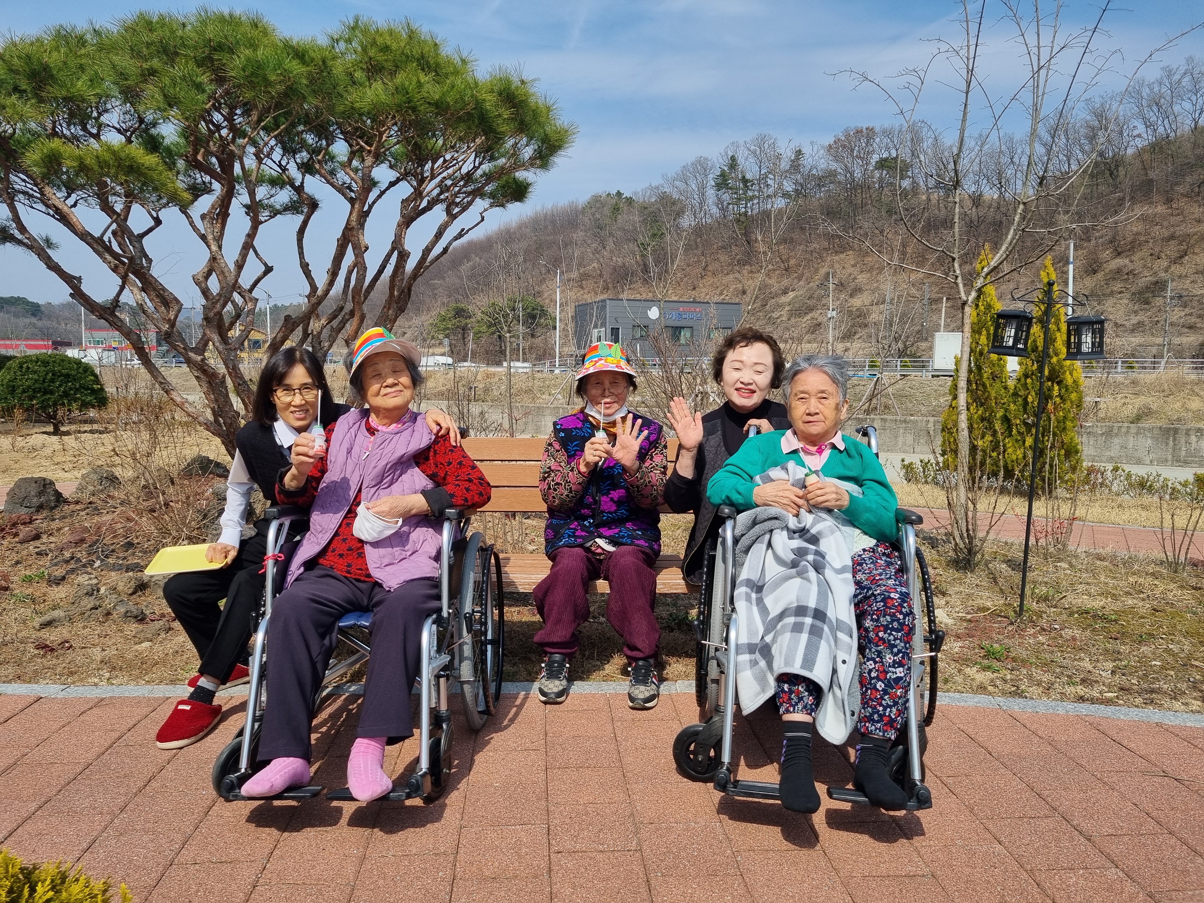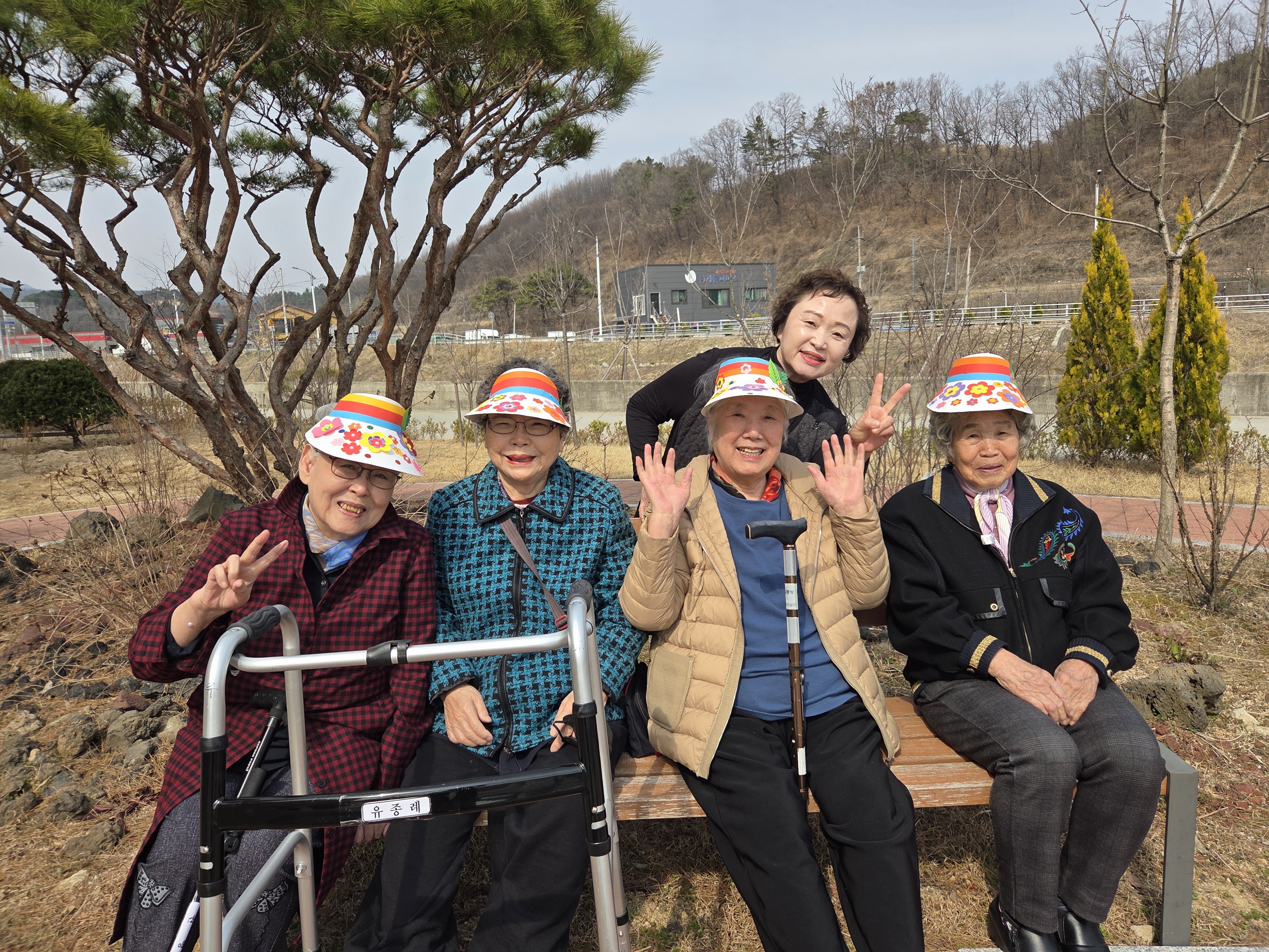 화창한 봄햇살이 기분 좋게 비추는 하루~ 어르신들께서 직접 만드신 꽃모자를 쓰고 산책을 나가보았습니다~^^