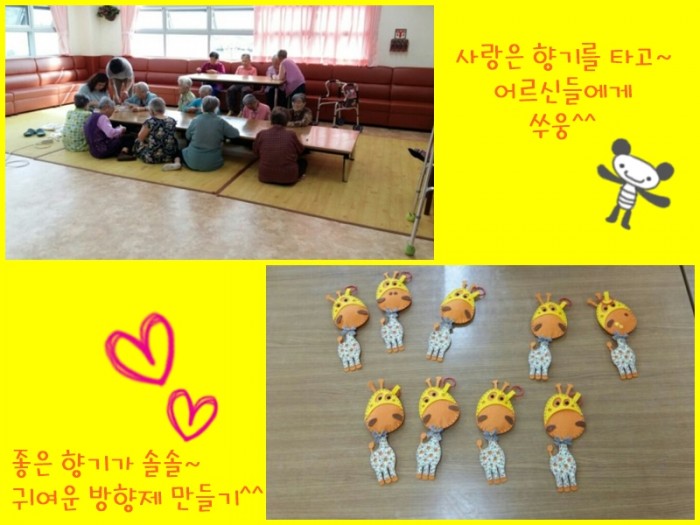 오늘은 공예 시간에 귀여운 기린 모양의 방향제를 만들어보았어요.