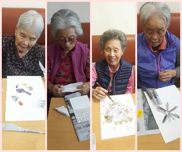 창작활동을 하고 완성된 작품을 설명하면서 뿌듯해하시는 모습을 보니