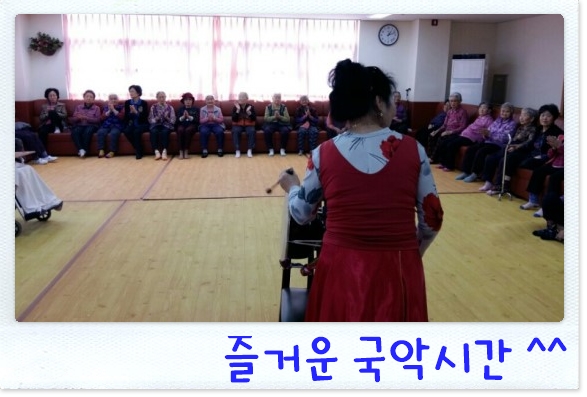 장구 장단에 맞춰 민요, 가요를 부르는 즐거운 국악시간이에요.