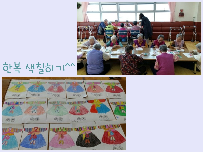 오늘은 미술치료 시간에 한복을 색칠해보았습니다. ^^