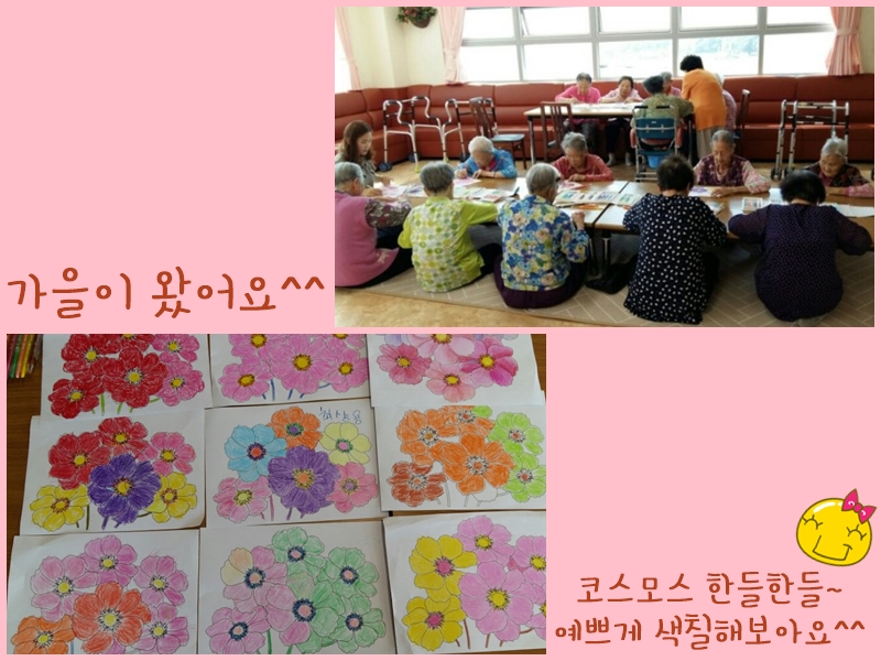 오늘은 어르신들과 코스모스를 색칠해보았어요.