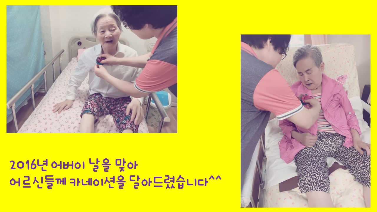 어버이날을 맞아, 어르신께 카네이션을 달아드렸습니다.